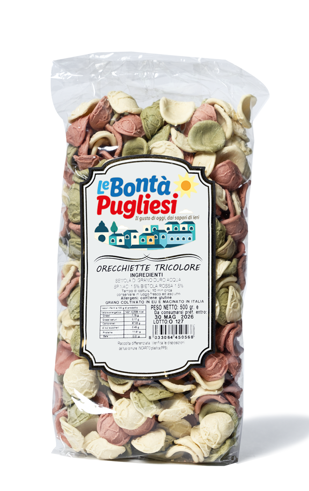 Semola di grano duro, acqua, spinaci 1,5% , bietola rossa 1,5%