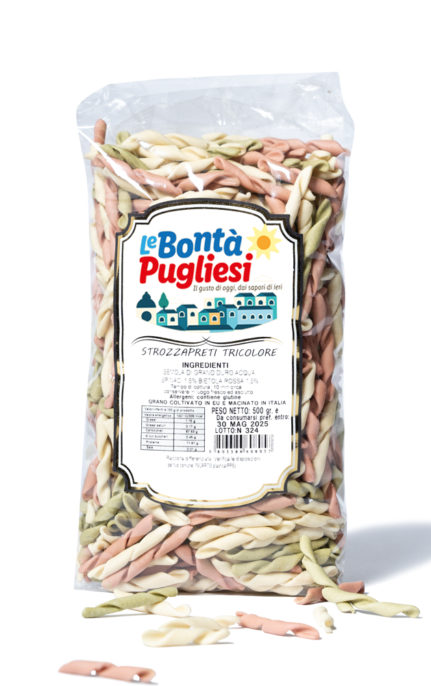 Semola di grano duro, acqua, spinaci 1,5% , bietola rossa 1,5%